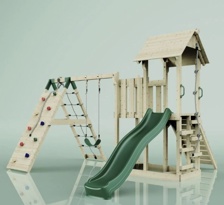 PolarPlay Uppsala, Legetårn m/gyngemodul og grøn rutsjebane, 358x361x274 cm