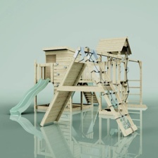 OutdoorToys Gustav, Legetårn m/klatremodul og mintgrøn rutsjebane, 562x503x291 cm