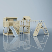 OutdoorToys Bene, Legetårn m/klatremodul og blå rutsjebane, 490x503x274 cm