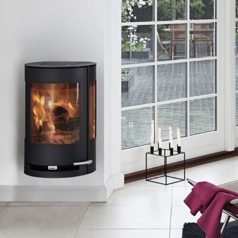 Aduro 9.4 er brændeovnen for dig, der ikke vil bruge for meget gulvplads, men stadig ønsker hyggen. Denne Aduro-model kommer i et let og elegant design og skal monteres på væggen – den kommer derfor ikke til at tage meget gulvplads, som traditionelle modeller gør. Den store glasfacade i fronten, kombineret med de to glaspaneler i hver side, bringer for alvor hyggen ind i dit hjem. Den flotte brændeovn er en af de mindre modeller og måler H: 75,2 cm, B: 50 cm, D: 46 cm og vejer 88 kg. Den har dog samme ydeevne som mange større modeller fra Aduro. Det rummelige brændkammer rummer brændestykker på maks. 39 cm i længden.