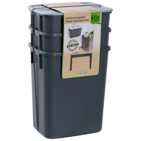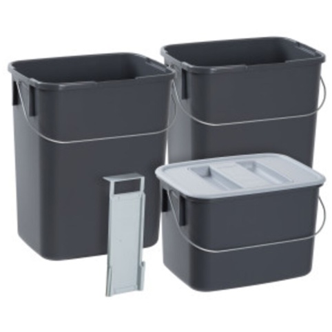 Gør det nemmere at sortere dit affald, med et affaldssystem i køkken eller bryggers. Dette system består af 3 spande: 1 spand á 7 liter og 2 spand á 12 liter. Der medfølger desuden 1 låg, der passer til begge størrelser spand.