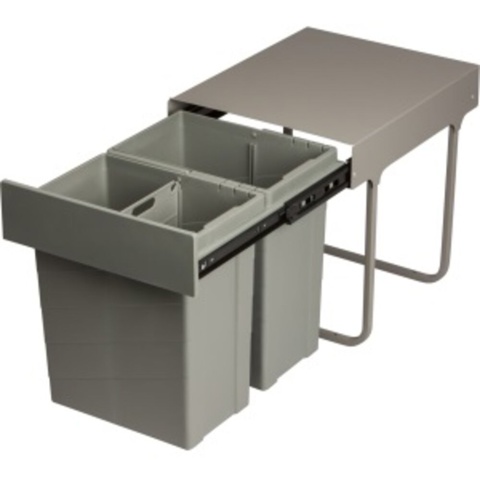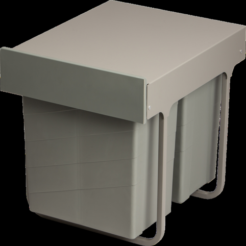 Affaldssystemet monteres i bunden af køkken- eller bryggersskabet. Takket være udtrækssystemet, har du nem adgang til begge spande. Spandene er lavet af kraftig PP-plast og stativet er lavet i metal. Samlet måler affaldssystemet B: 33 cm x D: 41,4 cm x H: 83,3 cm.