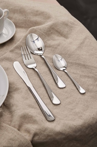 Dette bestiksæt indeholder 16 dele: gafler, knive, spiseskeer og teskeer – perfekt til både hverdagsbrug og når gæsterne kommer forbi. Bestikket er fremstillet af blankt rustfrit stål og tåler opvaskemaskine. Det kan kombineres med resten af stellet fra Atelier-serien, så du kan skabe et harmonisk og fuldendt udtryk..