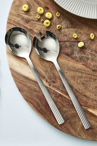 Dette salatbestik er det perfekte redskab at bruge, når du skal servere salater og pastaretter. Bestikket er fremstillet af rustfrit stål og tåler opvaskemaskine. Salatbestikket kan kombineres med resten af stellet fra Atelier-Groovy, så du kan skabe et harmonisk og fuldendt udtryk.