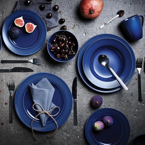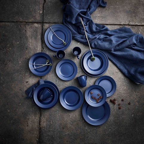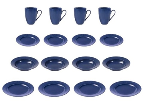 Dette tallerkensæt består af 16 dele: 4 kopper, 4 middagstallerkener, 4 frokosttallerkener og 4 suppetallerkener – det er ideelt til både hverdagsretter og gæstemiddage. Stellet har et moderne og skandinavisk design samt en elegant rillet struktur, der giver det et stilrent og tidløst udtryk.