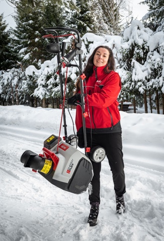 Batteridrevet sneslynge til snerydning omkring huset