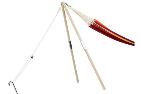 Med dette ankerstativ behøver du ikke finde et træ til at opsætte din hængekøje. Det er let at opsætte ankerstativet, da du blot skal fastgøre stængerne i jorden ved at anvende de medfølgende snore og pløkker. Ankerstativet, som har en højde på 165 cm, er designet til at give optimal støtte til en bred vifte af hængekøjer. Bemærk, at hængekøjen skal købes separat.