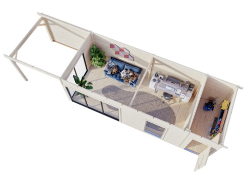 Andrea havehuset er skabt til dig, der vil have et ekstra rum i haven, som føles åbent og indbydende – og som samtidig giver dig et praktisk, overdækket område. Her kan du indrette et roligt fristed til hverdagen: et hjemmekontor med luft omkring tankerne, et hobbyrum til projekter og fordybelse eller et lille gæsteanneks. De store skydedøre gør det nemt at skabe en glidende overgang mellem inde og ude, så du kan trække lyset og haven helt tæt på, når vejret er med dig.