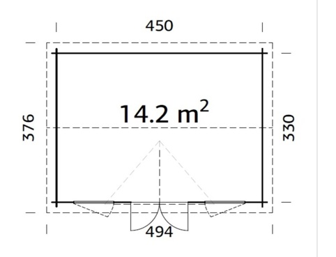 Claudia-annekset her er udført af nordisk gran, og det har en vægtykkelse på 44 mm og et massivt trætag og -gulv af 19 mm fer/not-brædder. Døren har en lamineret dørkarm, der er beklædt med rustfrit stål. Annekset måler B: 470 cm x D: 350 cm x H: 337 cm, som giver en størrelse på 14,2 m². Dobbeltdøren måler 144 x 172 cm, og hvert vindue måler 71 x 104 cm. OBS! Tagpap medfølger ikke, så dette skal tilkøbes separat.