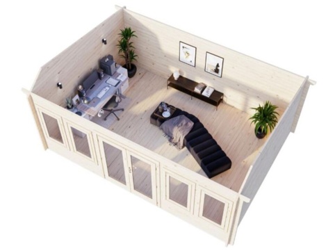 Claudia-annekset her er udført af nordisk gran, og det har en vægtykkelse på 34 mm og et massivt trætag og -gulv af 19 mm fer/not-brædder. Døren har en lamineret dørkarm, der er beklædt med rustfrit stål. Annekset måler B: 550 cm x D: 400 cm x H: 249 cm, som giver en størrelse på 19,4 m². Dobbeltdøren måler 144 x 172 cm, og hvert vindue måler 53 x 104 cm. Ruderne er af dobbeltglas i 3-9-3 mm tykkelse. OBS! Tagpap medfølger ikke, så dette skal tilkøbes separat.