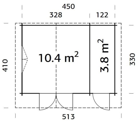 På udkig efter et simpelt anneks, som du og familien kan få gavn af i haven? Så kan du tilføje dette traditionelle anneks til dit udeareal. Annekset har 1 stort rum med 1 dobbeltdør med sprossede ruder i øverste halvdel og 1 dreje-/vippevindue med sprosser, mens det mindste rum har 1 enkeltdør.