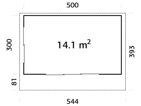 Træelementerne hertil er i ubehandlet nordisk gran – dog vil fundamentsbjælkerne være behandlet, og spær er af lamineret træ. Husets vægmål er B: 500 cm x D: 300 cm x H: 274 cm, og det indvendige gulvareal er på 14,1 m². Tagbrædder har en tykkelse på 19 mm, og gulvbrædderne er 28 mm tykke. OBS! Tagpap medfølger ikke, så dette skal tilkøbes separat.