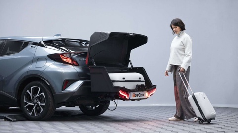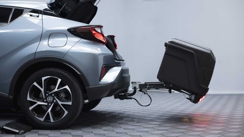 Bagageboksen monteres nemt på bilens anhængertræk – en opgave der kan klares af én person, takket være transporthjulene og den lave egenvægt på 28,5 kg. Det er desuden muligt at låse boksen fast til anhængertrækket samt selve boksen. Den er udstyret med fodbetjent tiltfunktion, hvilket giver nem adgang til bilens bagagerum, selv når boksen er monteret og læsset.