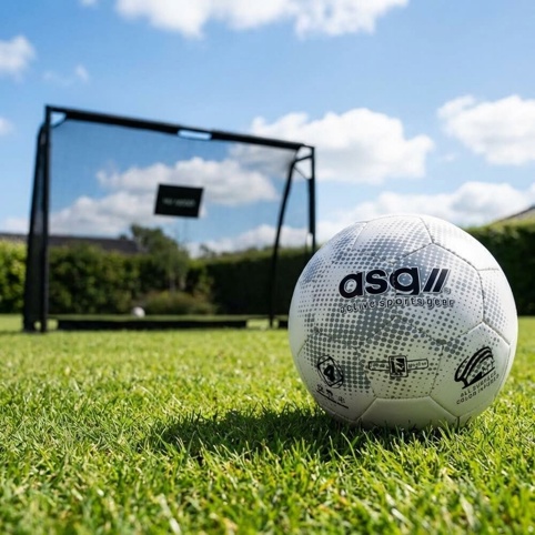 Vil du gerne have en fodbold til sommeren? Så kan du her finde denne super-fine kunstlæder fodbold fra ASG, som er i farverne hvid og grå. Den egner sig perfekt til at spille med i haven, parken, stranden o.l. Dens materiale gør, at den er forholdsvis beskyttet mod sol, regn og sne.