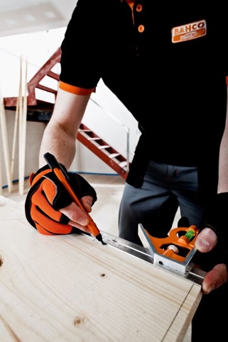Vinklen har justerbar dybde til gentagende mærkning og ridsning. Der er også en indbygget libelle til nivellering. I håndtaget er der en metalridsespids. Linealen er fremstillet af rustfrit stål, og dens længde er 305 mm.