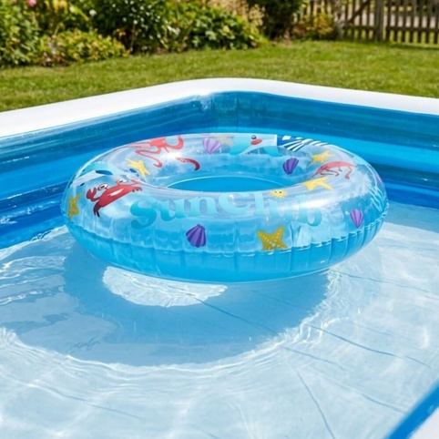 En badering er populært valg til leg i poolen og på stranden. Den er god til børn, som er trygge i vandet, men måske stadig har brug for lidt ekstra støtte, til at holde sig oppe. Denne model måler 50 cm i diameter. Baderingen er lyseblå og overdelen har farverige motiver i hav-inspireret tema. En badering som denne er rigtig god til at give ekstra sikkerhed i forbindelse med leg og svømning i pools. Husk dog, at du aldrig må efterlade børn uden opsyn, når de svømmer eller leger i vand.
