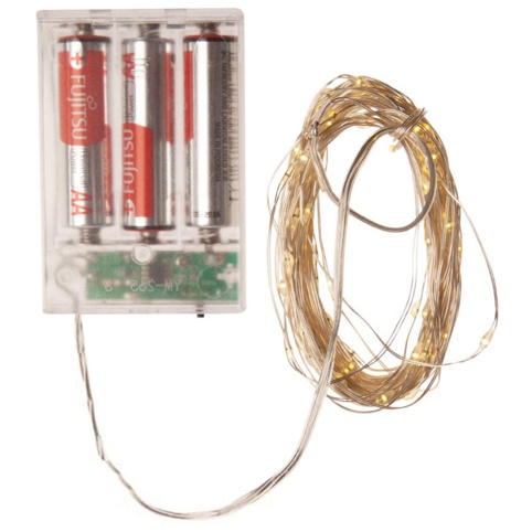 Du får en lyskæde, som bruger AA-batterier, der skal tilkøbes separat. Derudover er den IP20-klassificeret, så derfor er den kun beregnet til indendørs brug, hvor den ikke får fugt eller anden vandpåvirkning.