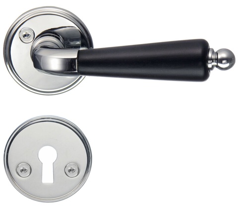 Indvendigt dørgreb i romantisk stil i poleret krom og sort