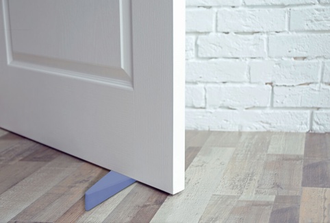Blågrå dørkile af gummi holder nemt døren åben