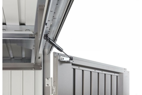 Du får her et ”Biohort AvantGarde”-redskabsskur, som er fremstillet og udført af varmgalvaniserede og ovnemaljerede stålplader. Det måler D: 260 cm x B: 260 cm x H: 218 cm inkl. tagudhæng. Redskabsskuret er desuden vedligeholdelsesfrit, og det har 20 års garanti. De medfølgende hylder og redskabsholdere er fremstillet af galvaniseret stål og efterfølgende lakeret gråhvid. Derudover er 3-punkts cylinderlåsen med et håndtag af rustfrit stål. Skuret her har et akrylglas integreret i toppen, som tilføjer lys ind i skuret.