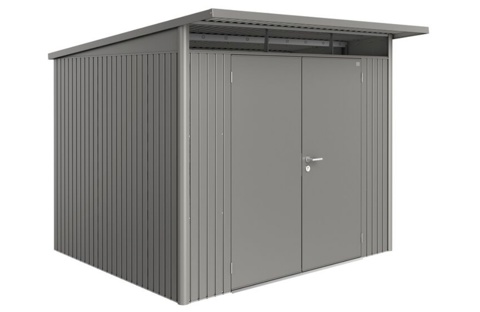 Du får her et ”Biohort AvantGarde”-redskabsskur, som er fremstillet og udført af varmgalvaniserede og ovnemaljerede stålplader. Det måler D: 260 cm x B: 260 cm x H: 218 cm inkl. tagudhæng. Redskabsskuret er desuden vedligeholdelsesfrit, og det har 20 års garanti. De medfølgende hylder og redskabsholdere er fremstillet af galvaniseret stål og efterfølgende lakeret gråhvid. Derudover er 3-punkts cylinderlåsen med et håndtag af rustfrit stål. Skuret her har et akrylglas integreret i toppen, som tilføjer lys ind i skuret.