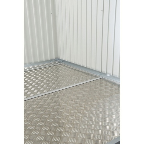Du får her gulvpaneler, der er udført af riflet aluminium. Materialet er altså velegnet til udendørsbrug og uopvarmede rum, som redskabsskur netop er. Derudover er aluminiummet rust- og korrosionsbestandigt, så gulvet er særdeles holdbart og anvendeligt i mange år frem. Desuden er gulvpanelet inkl. tilslutningsprofil.