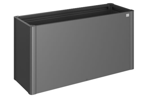 <h2>Få farve og dyreliv i haven med et højbed i mørkegrå metallic</h2><p>Vil du gerne give din have et farverigt udtryk? Så vil det oplagte valg være at tilføje højbede hertil – hvori du kan tilføje flere forskellige planter, som kan give farve til din have. Belvedere-højbedet har et stilrent og moderne design, som går igen ved alle produkterne fra Biohort. Bedets form gør, at det passer perfekt til hjørner – så du kan kombinere denne model med andre, og på den måde afskærme et område på terrassen.<br><br>Du kan bl.a. plante høstanemoner, studenternelliker eller primula. Men det kan også være frugtbuske som solbær, blåbær, stikkelsbær eller ribs, så du også kan lave hjemmelavet marmelade, eller blot sunde snacks. Hvis du sætter pris på friske krydderurter, kan du lave en urtehave i højbedet med timian, estragon, spinat, purløg og lignende urter.</p><br><h2>Højbed som er beskyttet mod gnavere</h2><p>Dette højbed er fremstillet af varmgalvaniseret stål, og det er i farven mørkegrå metallic. Det måler D: 53 cm x H: 77 cm, og det findes i forskellige breddemål. De hårdføre materialer er velegnede til udendørs brug, som giver dig et robust og vejrbestandigt plantebed. Dette plantebed er udstyret med en smart styreskinne, som gør, at du kan åbne for sidevæggene og skifte jord. Pakken inkluderer et integreret glasfibernet, som giver det beskyttelse mod gnavdyr. Du får 20 års garanti på dit nye højbed, som vidner om lang holdbarhed.<br><br>Til opsætningen er den estimerede montagetid kun 10 minutter, og du skal kun blot 8 skruer til samlearbejdet. Du vil også kunne tilkøbe en masse ekstra tilbehør, alt afhængig af, hvilke planter som du vil have heri. Ved slyngplanter, vil det optimale valg være at tilføje espalier hertil.</p><ul><li>Vedligeholdelsesfri – 20 års garanti</li><li>Inkl. mellemhylde og åbning til vandslange</li><li>Enkel tømning – sidevægge er let-åbnede</li><li>Beskyttet mod gnavere – med integreret glasfibernet</li></ul>