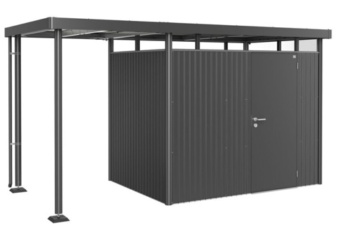 Sidetaget findes i forskellige mål, som passer til HighLine redskabsskure fra H2-H5. Det er også fremstillet i varmgalvaniseret og polyamidlakeret stål. Denne model er i farven mørkegrå metallic.
