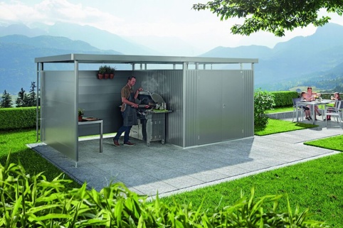 Den smarte sidevæg kommer i farven kvartsgrå metallic, som passer til sortimentet af ”Biohort HighLine”-redskabsskure i samme farve. Den er fremstillet i varmgalvaniseret, zink- og polyamidlakeret stål, som passer til redskabsskurets materialer, og det giver skuret et ensartet look. Materialevalget til sidevæggen gør, at den er vejr- og korrosionsbestandig, som er ideelt til udendørs brug.