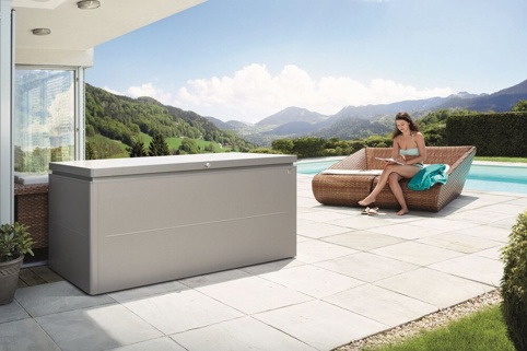 ’’Biohort LoungeBox’’-opbevaringsboks har et lækkert og helt enkelt design, som også kommer af materialet den er fremstillet af – låget er af pulverlakeret aluminium, og siderne er af varmgalvaniseret og polyamidbelagt stål. Så du får en opbevaringsbox både med et moderne design og af lækkert materiale – som passer ind i de fleste hjem. Specielt udenfor, da den er vandtæt.