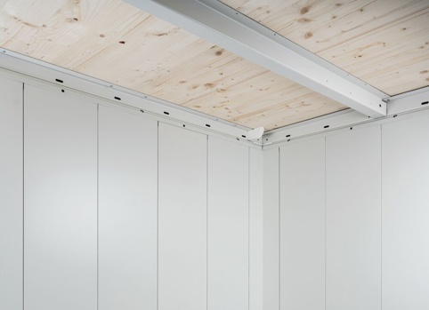 Du får her et ”Biohort Neo”-redskabsskur, som er fremstillet og udført af varmgalvaniserede og ovnemaljerede stålplader. Det måler D: 180 cm x B: 180 cm x H: 222 cm, og har et areal på 3,2 m². Redskabsskuret er desuden vedligeholdelsesfrit, og det har 20 års garanti. De medfølgende hylder og redskabsholdere er fremstillet af galvaniseret stål og efterfølgende lakeret gråhvid. Tagkonstruktionen, som også medfølger, er af trækrydsfinér med EPDM-tagmembran. Derudover er 3-punkts cylinderlåsen med et håndtag af rustfrit stål. Skuret her har et akrylglaspanel integreret, som tilføjer lys ind i skuret.