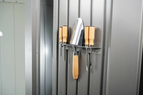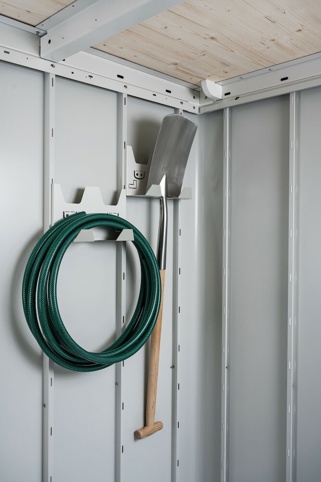 Du kan også bruge skuret til at parkere din cykel, scooter og lignende, så de er i tørvejr. Og hvis du vil integrere skuret mere, og samtidig gøre det hyggeligt omkring kan du bygge en sti af sten eller grus hen til indgangen. Du kan også tilkøbe FloraBoard-blomsterkasse, hvori du kan plante blomster og tilføje mere farve til. Der medfølger standardudstyr, som består af: 2 stk. værktøjsophæng, 2 stk. nedløbsrør, 2 stk. hylder, træloft, integreret tagrende og 2 stk. redskabsholdere. Yderligere tilbehør kan du tilkøbe efter behov.