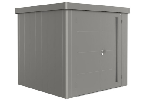 Du får her et ”Biohort Neo”-redskabsskur, som er fremstillet og udført af varmgalvaniserede og ovnemaljerede stålplader. Det måler D: 236 cm x B: 236 cm x H: 222 cm, og har et areal på 5,6 m². Redskabsskuret er desuden vedligeholdelsesfrit, og det har 20 års garanti. De medfølgende hylder og redskabsholdere er fremstillet af galvaniseret stål og efterfølgende lakeret gråhvid. Tagkonstruktionen, som også medfølger, er af trækrydsfinér med EPDM-tagmembran. Derudover er 3-punkts cylinderlåsen med et håndtag af rustfrit stål. Skuret her har et akrylglaspanel integreret, som tilføjer lys ind i skuret.