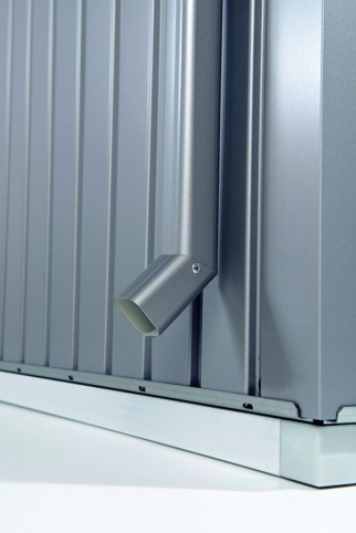 Udover farverne så bliver det elegante og stilrene design ført videre til disse nedløbsrør. Derfor kan du få dem i samme farve og kvalitet, som redskabsskurene fra ’’Panorama’’-serien. Derved får du et ensartet slutresultat på dit skur og tilbehør hertil. Materialet er det samme som Panorama-redskabsrummet – dvs. nedløbsrørene er fremstillet af varmgalvaniseret og polyamidlakeret stål.