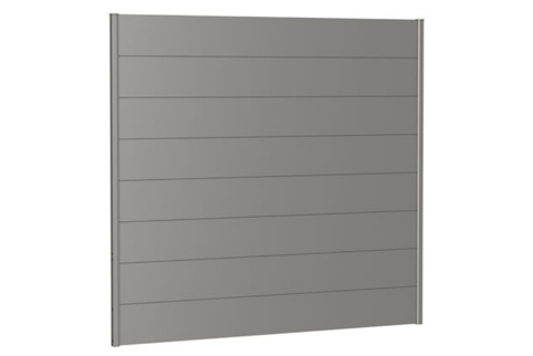 Du finder her en model, som er bestående af 8 metalpaneler og 2 styreskinner. Disse styreskinner skal bruges til montage mellem 2 læhegnsstolper. Men du skal være opmærksom på, at der ikke følger stolper med hertil – og disse kan findes til enten jord eller beton. Vægpanelet kan du finde i flere forskellige størrelser, og denne model har en højde på 180 cm – derudover er denne model også uden akrylglaspanel.