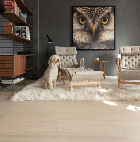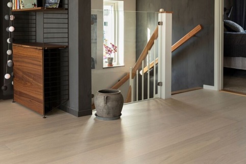 Woodura Visitorp-plankegulv i eg Powder White med pro matlak