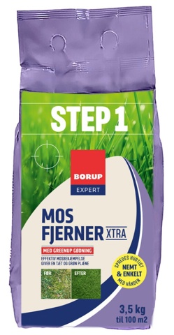 Denne mosfjerner er step 1 ud af 4 til en flot og robust græsplæne – step 2 er Borup Expert plænegødning, step 3 er Borup Expert plænerens og step 4 er Borup Expert Græsfrø de Luxe. Følg alle stepsene og opnå en smuk, grøn, mosfri plæne.