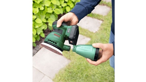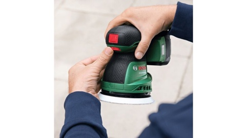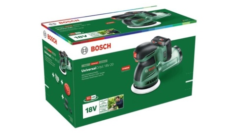UniversalOrbit 18V-20 er en solo maskine, hvilket vil sige, at den leveres uden batteri og lader. Til maskinen skal du bruge 1x 18 V Bosch Power for All-batteri med en kapacitet på 2,0 Ah eller derover.