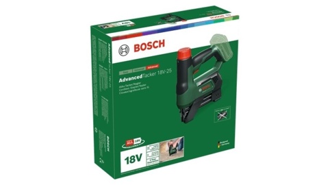 AdvancedTacker 18V-25 er en solo maskine, hvilket vil sige, at den leveres uden batteri og lader. Til maskinen skal du bruge 1x 18 V Bosch Power for All-batteri med en kapacitet på 1,5 Ah eller derover.