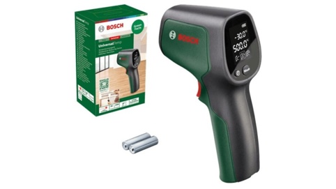 Bosch UniversalTemp er et praktisk infrarødt termometer, der gør det nemt at måle overfladetemperaturer hurtigt og præcist. Med et stort måleinterval fra -30 °C til +500 °C kan du måle alt fra fryserens inderside til en glohed pizzasten – uden at røre ved overfladen. Termometeret har 3 målefunktioner, så du kan få mere præcise resultater afhængig af materialet. Du kan også vælge mellem enkeltmåling eller kontinuerlig måling, alt efter behov, og den baggrundsbelyste skærm viser både den aktuelle og forrige måling, så du nemt kan sammenligne.