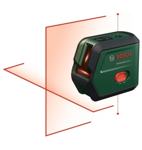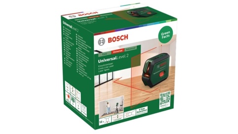 Bosch UniversalLevel 2 er en præcis og brugervenlig krydslinjelaser, der gør det nemt at få styr på både vandrette og lodrette linjer – perfekt til opgaver som opsætning af hylder, gardinstænger, lamper eller tapet. Den projicerer et klart laserkryds med ekstra lodpunkter op og ned. Takket være den automatiske selvnivellering får du altid lige linjer, selv på ujævne underlag. Med en åbningsvinkel på 100° og en rækkevidde på op til 12 meter får du lange og tydelige laserlinjer, selv på kort afstand.