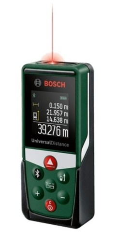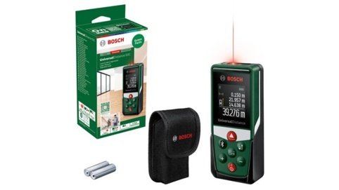 Bosch UniversalDistance 50C er en laserafstandsmåler, der kombinerer præcision med digital dokumentation. Den måler afstande op til 50 meter med en nøjagtighed på ±2 mm og har integrerede funktioner til beregning af længde, areal og volumen – perfekt til alt fra gulvlægning til beregning af mængden af maling eller tapet, du skal bruge til dit projekt.