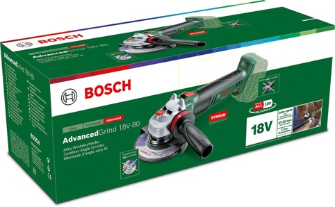 AdvancedGrind 18V-80 er en solo maskine, hvilket vil sige, at den leveres uden batteri og lader. Til maskinen skal du bruge 1x 18 V Bosch Power for All-batteri med en kapacitet på 4,0 Ah eller derover.