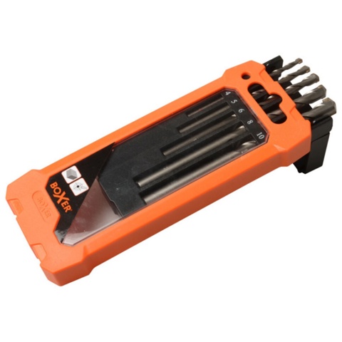 Borsæt fra Boxer med 5 dele. Borene er lavet i en stærk karbonstål og gør dem derfor velegnet til brug i beton og murværk. Derudover har borene en diameter på mellem 4-10 mm. Borsættet kommer i en praktisk holder, som er nem at tage med.