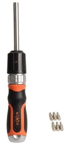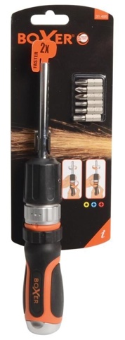 En skraldeskruetrækker er en skruetrækker med skraldefunktion. Det betyder, at du får en skruetrækker, der har et indvendigt led, kaldet en skralde, hvor den kan dreje omkring sig selv. Du kan derfor bruge en skraldeskruetrækker på steder med mindre plads, eller hvor en normal skruetrækker ikke kan komme til. Den er 24 cm lang, så du kan komme ind til det, der skal skrues, og der medfølger 6 bits til forskellige typer kærv. Den er lavet i stål og har et magnetisk hoved til let og hurtigt at skifte bits.