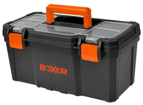 Med denne værktøjskasse fra Boxer kan du nemt holde dit værktøj samlet, så du altid ved, hvor du skal kigge efter skruetrækkeren og hammeren. Værktøjskassen måler L: 408 mm x B: 196 mm x H: 196 mm. Den firkantede form gør værktøjskassen ekstra rummelig, og gør det muligt at udnytte al pladsen til diverse værktøj og tilbehør. Den indbyggede opbevaring i låget er ideel til organisering af mindre tilbehør såsom unbrakonøgler og skruer. Værktøjskassen er lavet i robust plast, og takket være det nedfældelige bærehåndtag i toppen, er den nem at transportere.