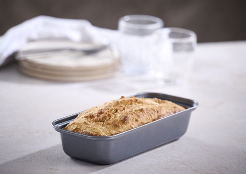 Bag det lækreste franskbrød hver gang med denne brødform, der har en keramisk non-stick belægning. Dette sikrer, at dejen slipper nemt, og det giver en jævnt bagt skorpe med smuk gylden farve. Brødformen tåler op til 230 °C. Brug f.eks. formen til at bage franskbrød, bananbrød, focaccia, linsebrød o.l. Den tåler ikke opvaskemaskine – rengør den i stedet med varmt vand og mild sæbe for at bevare den keramiske belægning og få glæde af den i mange år frem.