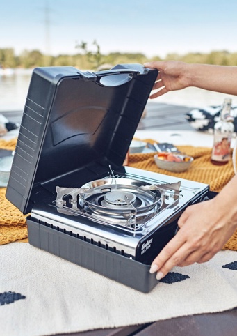Lav varm mad hvor som helst. Dette kraftige campingkogeblus leverer hele 2,2 kW og har trinløs regulering, så du nemt går fra let simren til fuldt blus. Den robuste konstruktion og indbyggede sikkerhedsfunktioner gør det ideelt til camping, fisketure, shelterture eller som nødkogeblus derhjemme. Den passer til gryder og pander op til Ø: 26 cm – perfekt til kaffevand, morgenmad og hurtige måltider på farten.