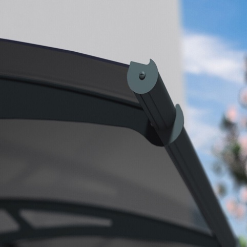 Canopia Aquila er en elegant dørbaldakin, som vil beskytte indgangspartiet mod regn og dårligt vejr – samtidig med, at den giver et let og moderne udtryk. Baldakinen har et solidt 4 mm akrylpanel med høj slagstyrke, røgfarvet grå finish og UV-beskyttelse. De laserskårne beslag er pulverlakerede og fremstillet i galvaniseret stål med mørkegrå overflade, mens fronten er beklædt med aluminium for et stilrent udtryk. En skjult gummipakning bagved tætner mod væggen og hjælper med at forhindre vandudsivning.