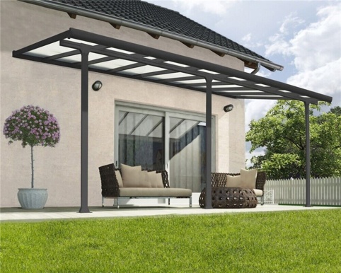 Canopia Feria terrasseoverdækningen er opbygget med tag i 8 mm polycarbonatplader og en pulverlakeret aluminiumramme, der giver en stabil løsning til udendørs brug. Overdækningen leveres som saml-selv og er udstyret med et click’n’lock-system, der gør samlingen enkel og sikker. Systemet låser pladerne fast mellem profilerne og hjælper med at holde konstruktionen tæt, så vand ikke trænger igennem. Der medfølger galvaniserede stålbeslag.